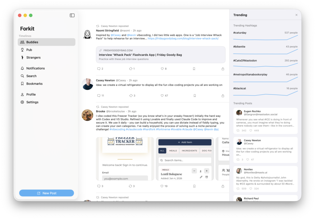 Forkit is a native Mastodon client for iOS and macOS. I wrote it in two evenings using the “vibe coding” method. It is designed specifically for The Fediverse Experiment.